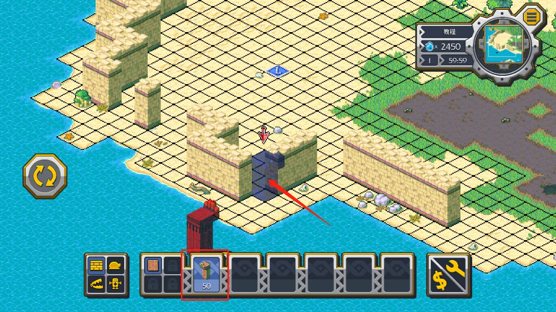 9、如果放错了,还可以点击右下方的$按钮,然后再点击上图放错的建筑,就可以进行售卖;